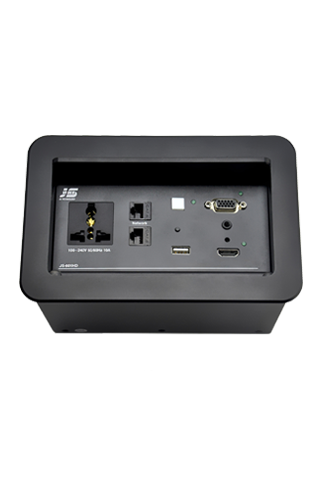 ? 某公司視頻會(huì)議項(xiàng)目,在設(shè)備選型中,金視JS-MF定制桌面插座)成為項(xiàng)目選定品牌及型號(hào),視頻會(huì)議共使用43套金視產(chǎn)品;(其中21臺(tái)為銀色,19臺(tái)黑色 分1層和5層會(huì)議室使用)? 金視JS-MF定制產(chǎn)品?桌面電動(dòng)翻轉(zhuǎn)插座,可藏式接線(xiàn)盒提供了一個(gè)整潔、緊湊、簡(jiǎn)單的連接解決方案。采用電動(dòng)控制,使用時(shí)只需輕按接線(xiàn)盒開(kāi)啟按鍵,接線(xiàn)盒 180°旋轉(zhuǎn),隱藏的各種接口即展現(xiàn)