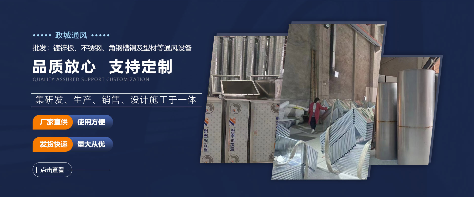 成都政城通風(fēng)設(shè)備有限公司具有8年風(fēng)管加工、不銹鋼通風(fēng)管行業(yè)經(jīng)驗(yàn),集研發(fā)、生產(chǎn)、銷(xiāo)售、設(shè)計(jì)施工于一體。擁有3000平方生產(chǎn)基地,30余名工作人員。 提供不銹鋼通風(fēng)管、消防通風(fēng)管、螺旋管、焊接油煙管道及異形管件一站式解決方案。 批發(fā):鍍鋅板、不銹鋼、角鋼槽鋼及型材等通風(fēng)設(shè)備一站式生產(chǎn)與服務(wù)源頭廠(chǎng)家。